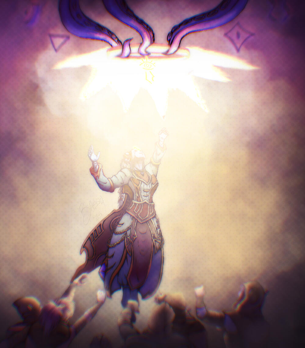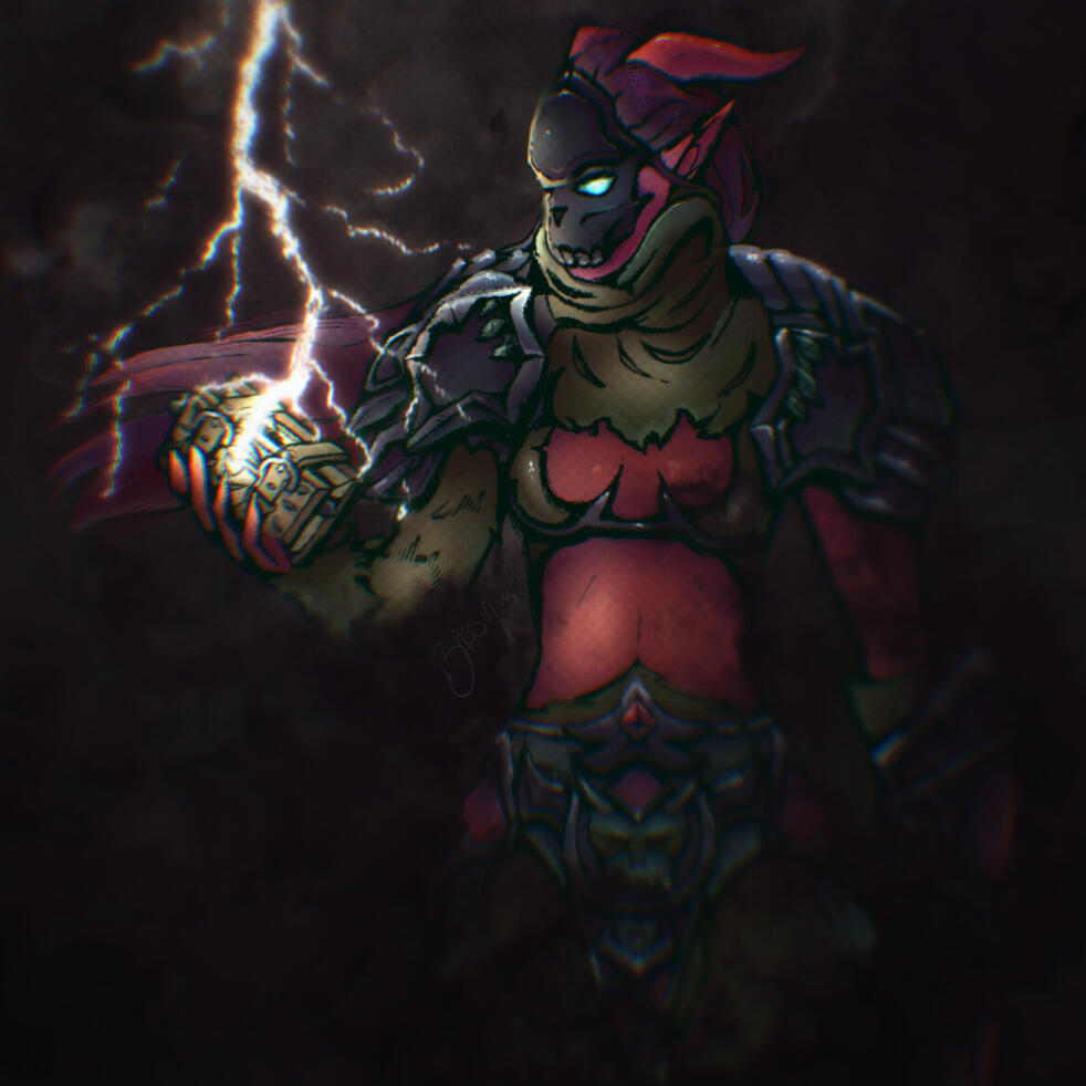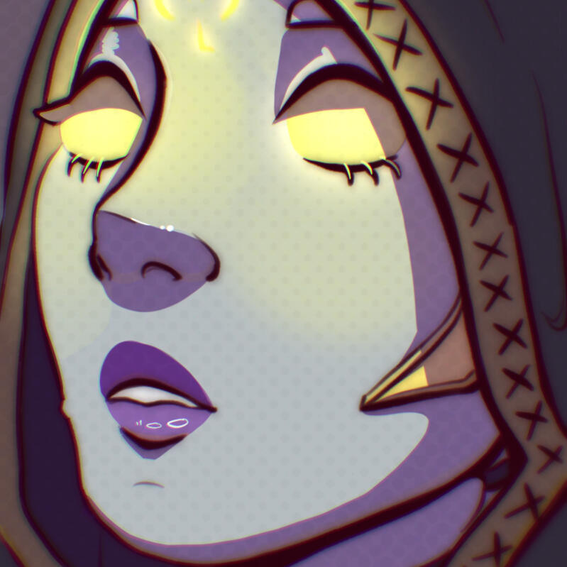 Rendered using gradient maps and harsh, cell-shading-like style.